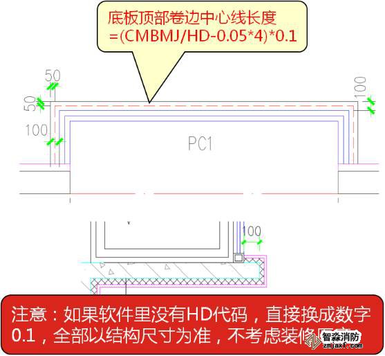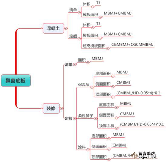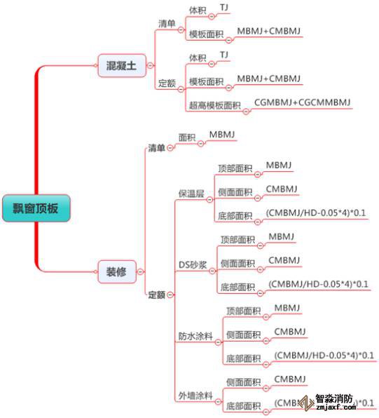 估計(jì)很多朋友看不懂“(CMBMJ/HD-0.05*4*0.1”,我解釋下,CMBMJ是飄窗底板側(cè)面模板面積,除以HD(厚度)就是側(cè)面長度,減去0.05*4就是我們要求底板裝修上翻的中心線長度,在乘以0.1就是上翻的面積。