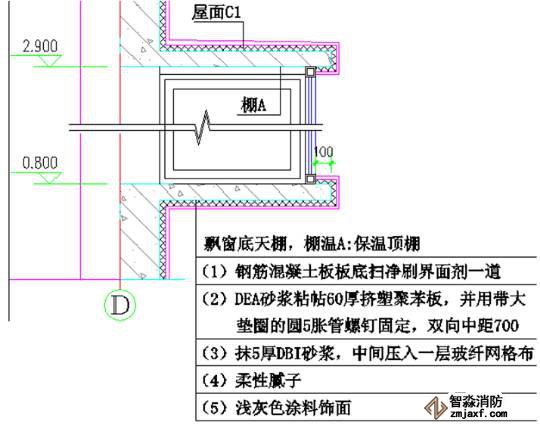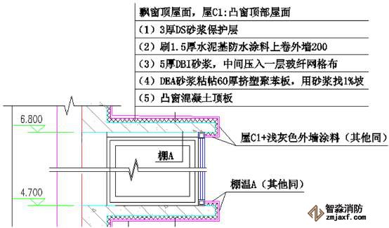 上圖是飄窗底板的裝修做法,從圖中我們可以看出,包括了5層裝修量。